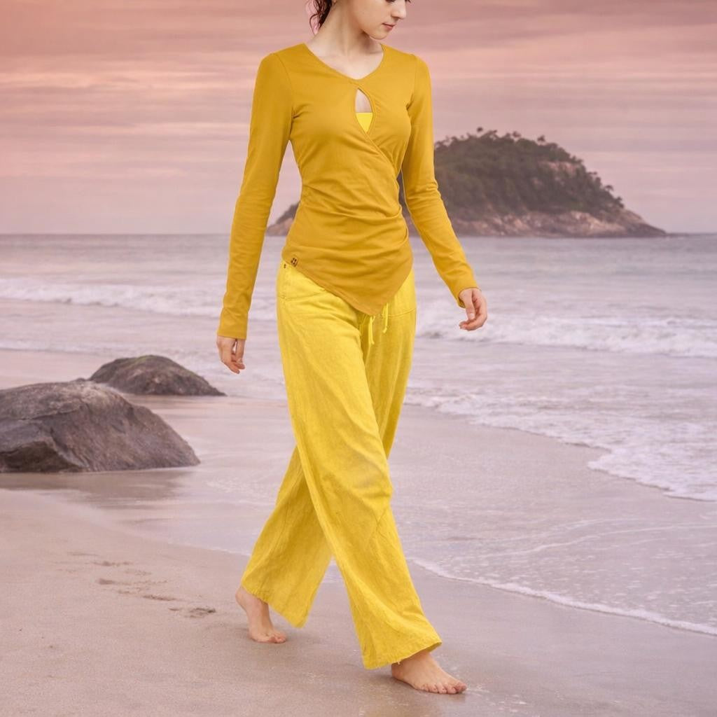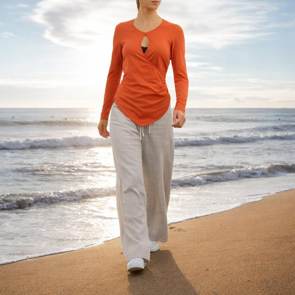 • Fitted shirt with fixed wrap creating a deep special round neck.