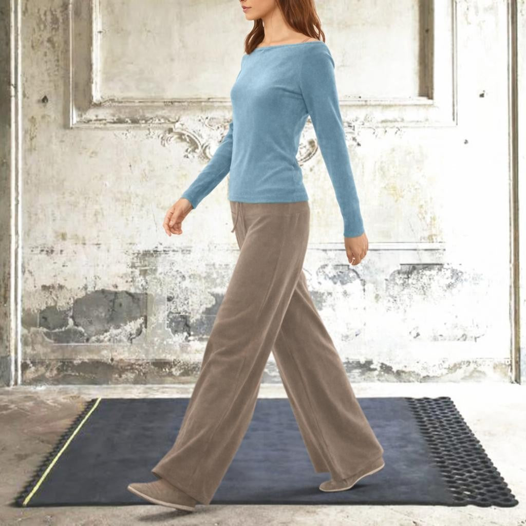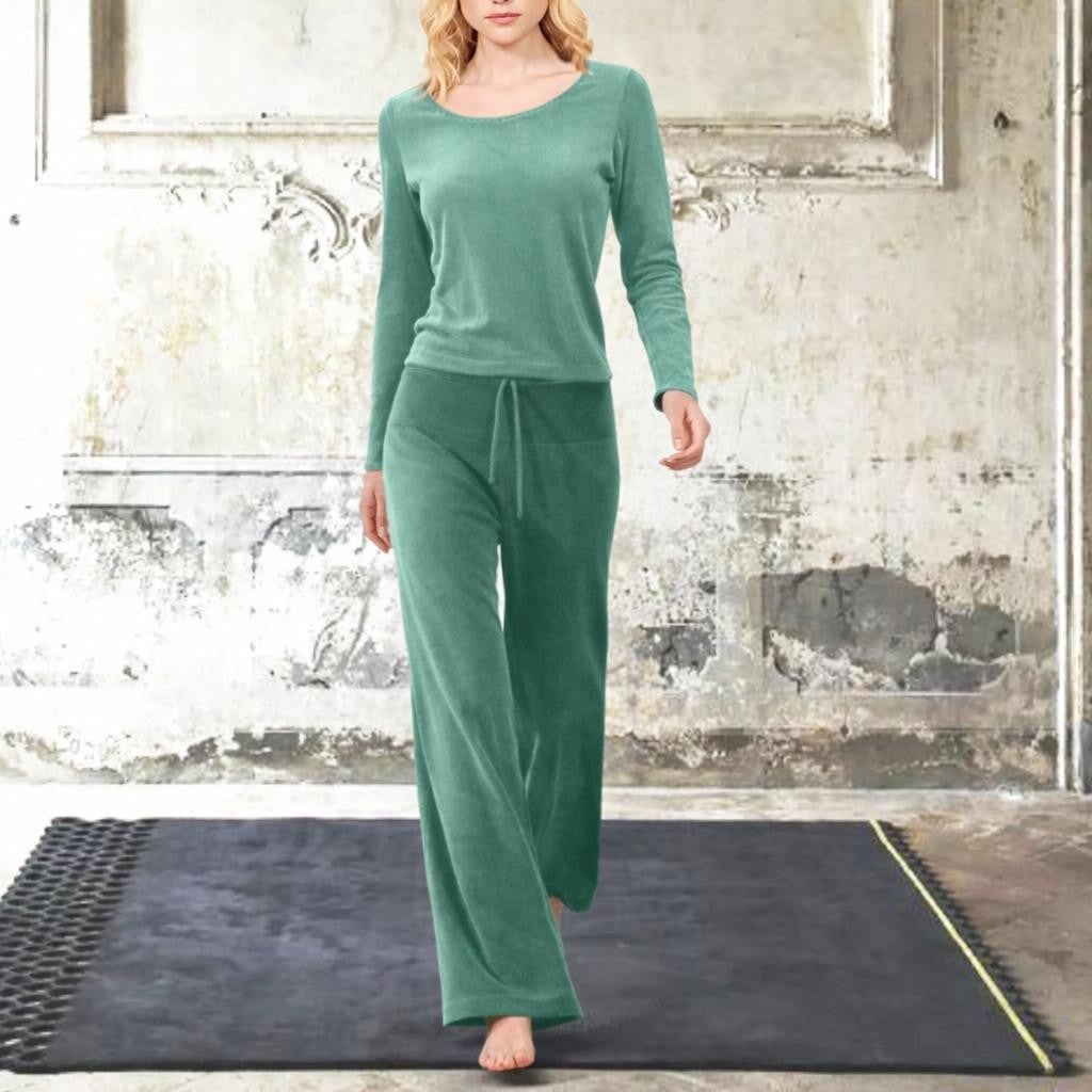 - Elegante lange broek met wijde pijp en rond gesneden heupband, afgewerkt met een tunneltje met koordje. De rondgesnede dubbele tailleband zorgt voor een perfecte pasvorm. Gemaakt van soepele gebreide nicky velours.