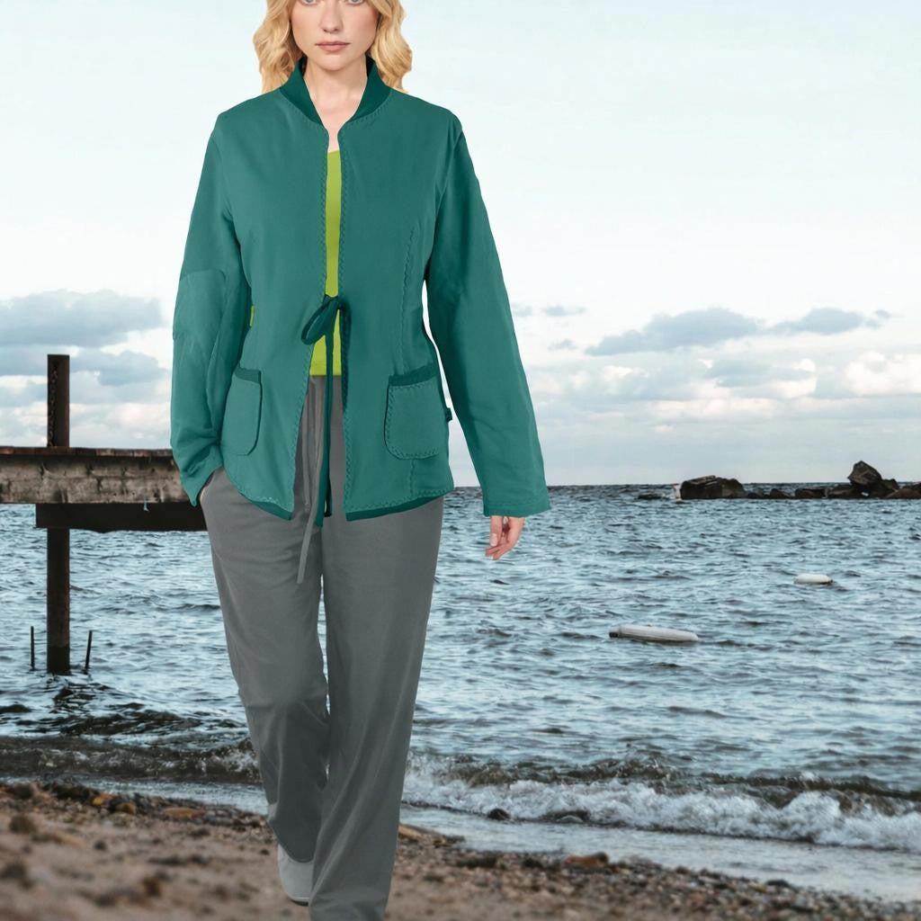 • This sporty cardigan is slightly fitted. The cotton jersey cuffs and collar provide the sporty look. The bodice is lined with cotton tricot so that it is warm and comfortable to wear. Made of super soft and comfortable brushed (warm) cotton sweat fabric, lined with cotton tricot.