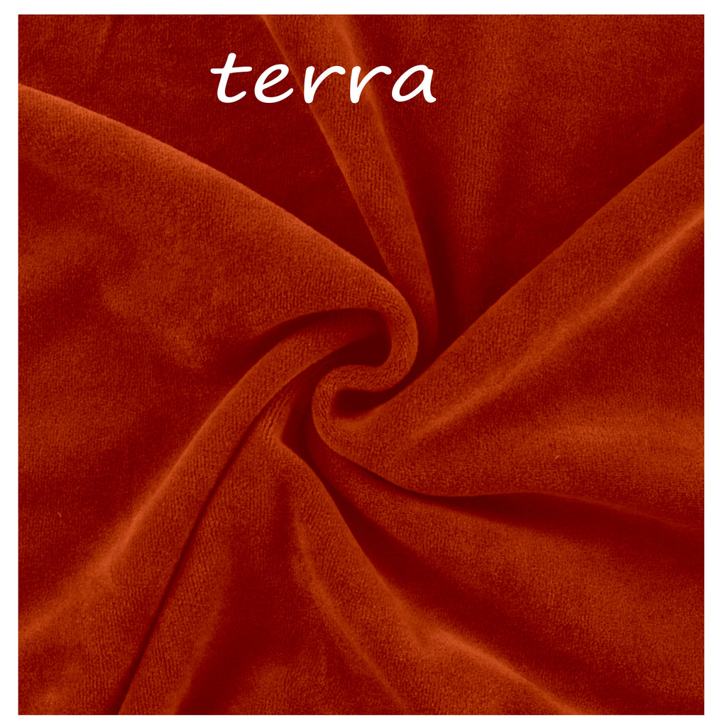 • Fabric: knitted cotton velvet velours with a light and soft and luxery character in the surface.