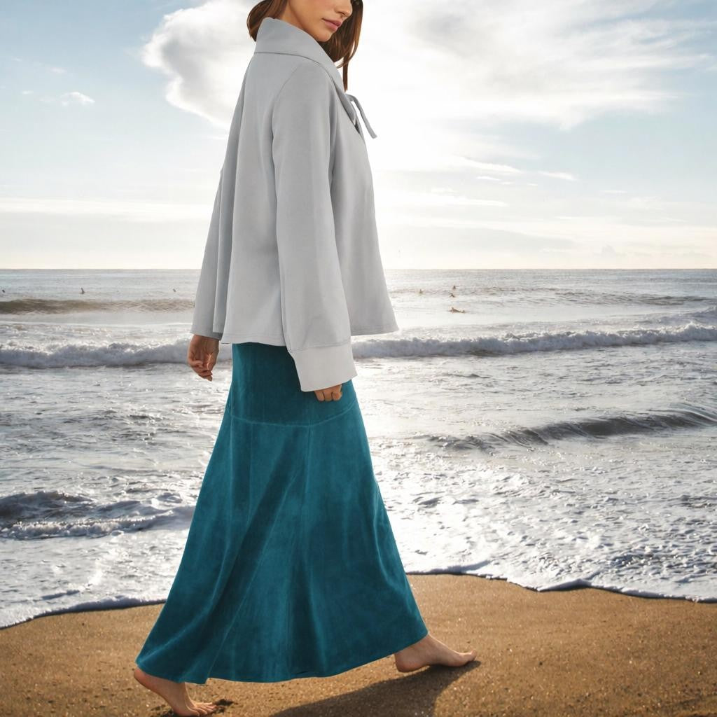 MODEL: comfort fit,open vallende A-lijn, brede manchetten.