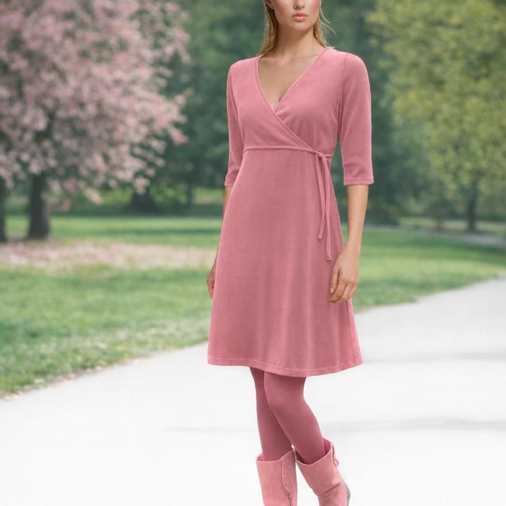 A-lijn velours jurkje met overslag V hals/ A-line velours dress with V neck