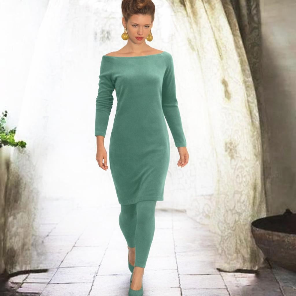 - Model: Stylish dress to be be worn casually, festively and formally. Fitted, pencil, boatneck, long sleeves.