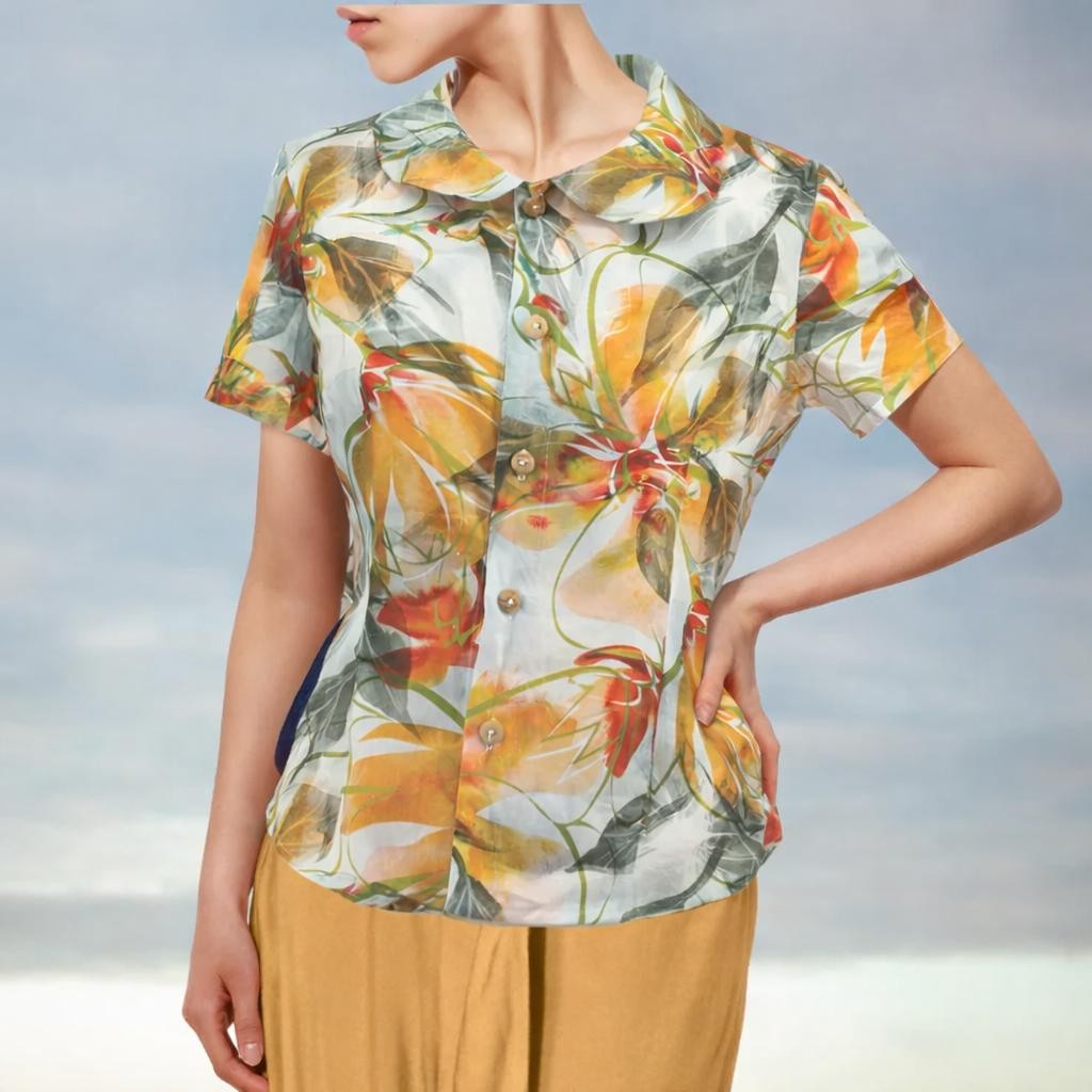 linnen print retro bloesje met rond kraagje /linen printed retro summer blouse
