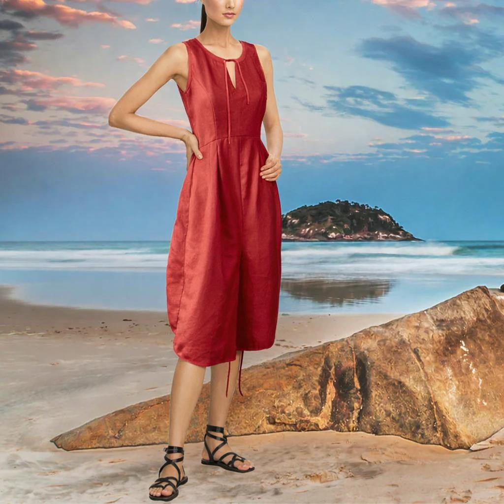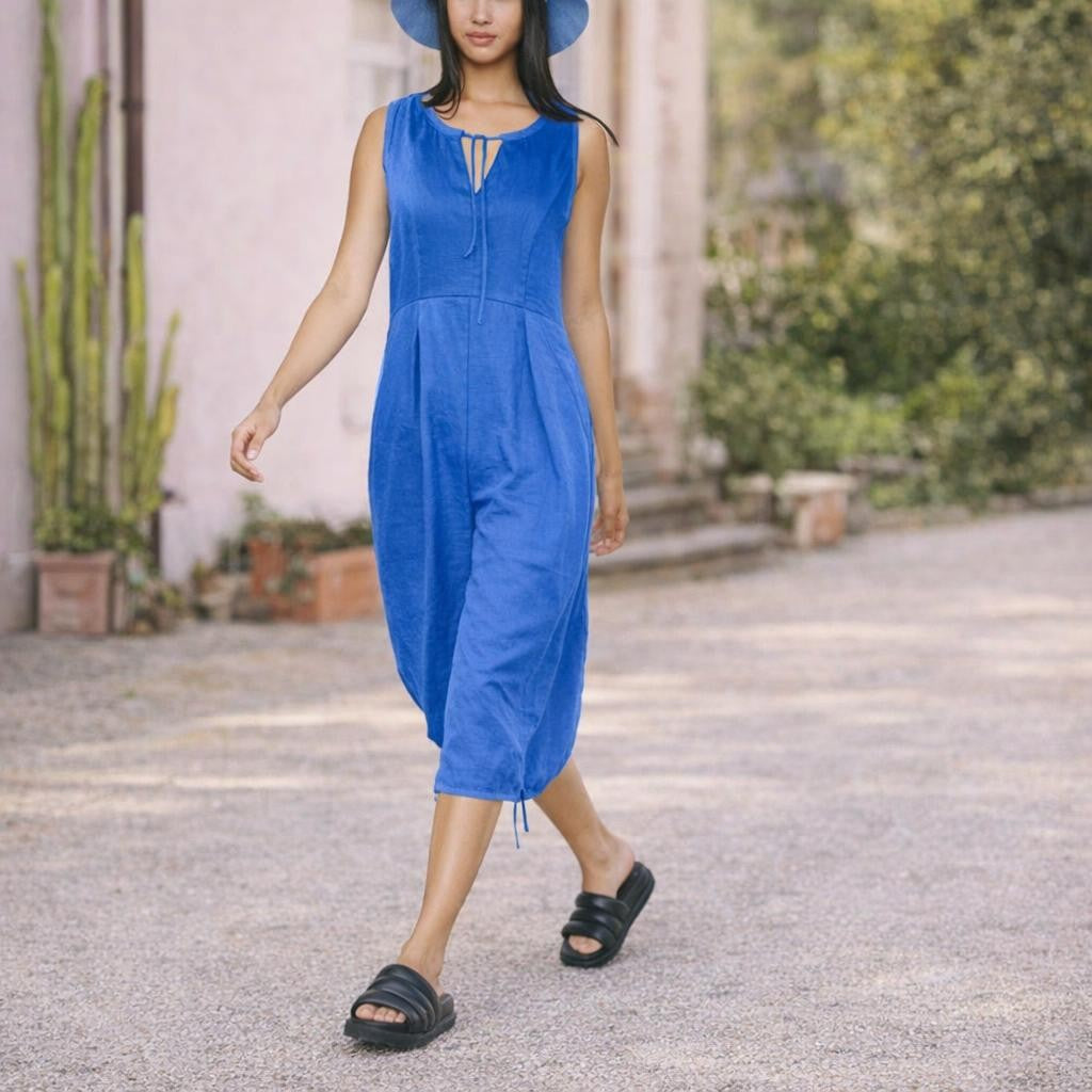 Sportief mouwloos jurkje met koordjes in linnen-katoen mix/ sporty dress in linen-cotton mix