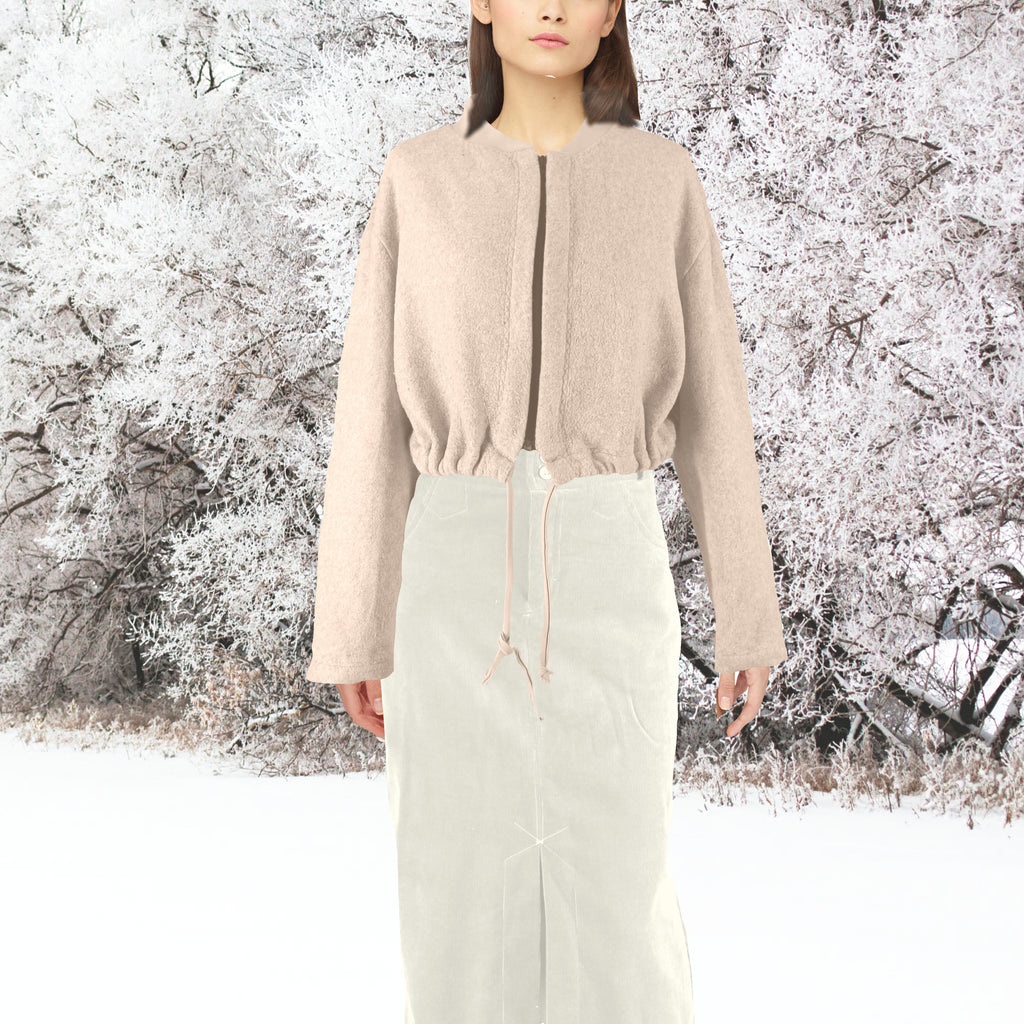 - Comfortable bomber cardigan in warm and soft Merino wool fleece.
