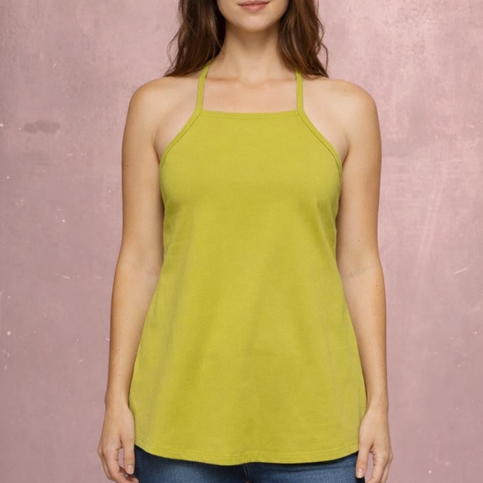 - Summery A-line camisole. The shoulder straps can be adjusted by a bra slider. Made of stretchy smoothly falling, organic jersey.
