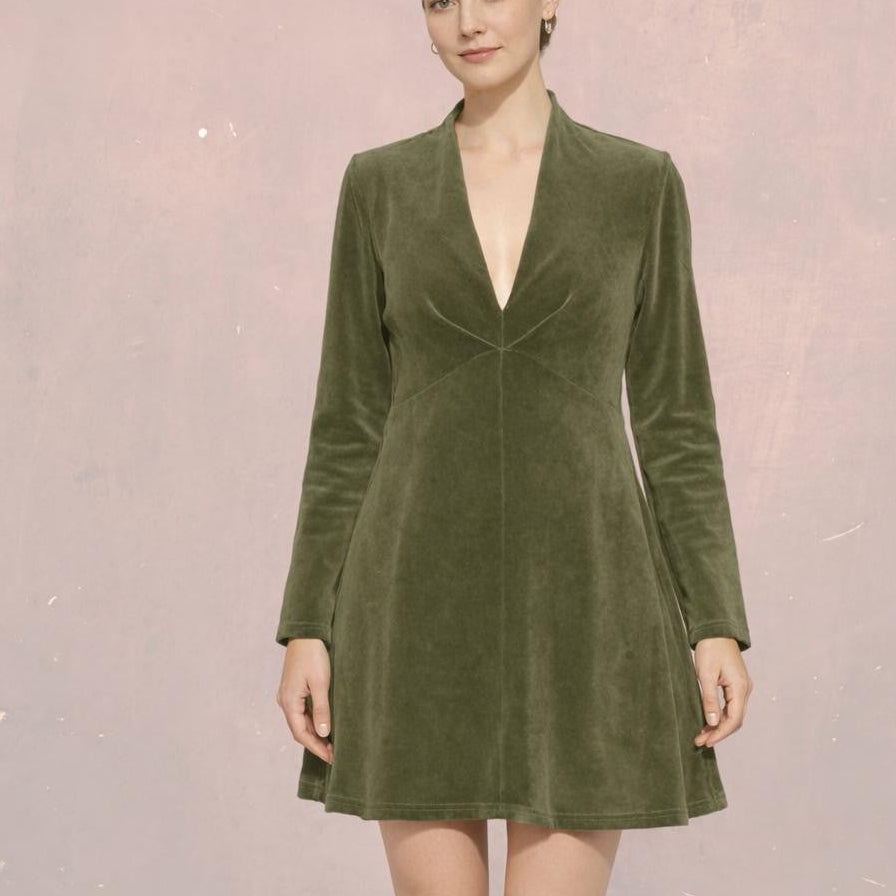 - A-lijn tuniek met een geplooide diepe V hals. Gemaakt van comfortabele rekbare katoenen velours.