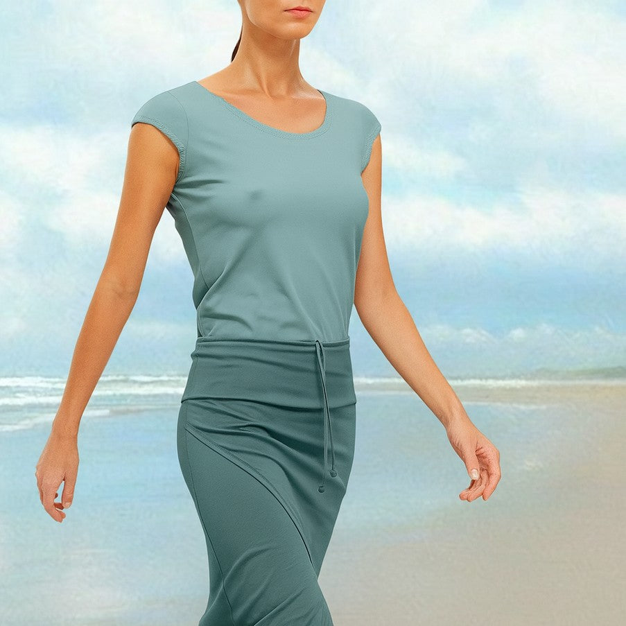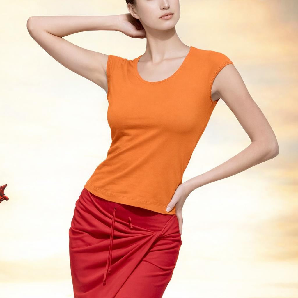 - Fitted standaard shirt met kapmouwtje gemaakt van stretchy soepele biologische tricot.
