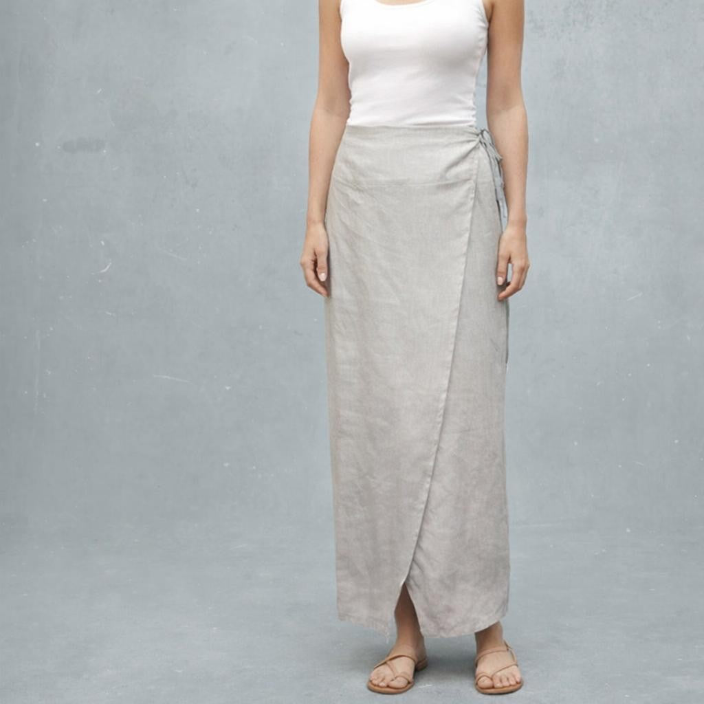 Lange overslag rok van biologische linnen / Long linen wrap skirt