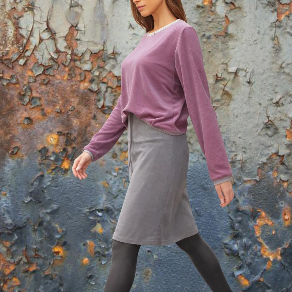 - Basic rokje gemaakt van comfortabele rekbare katoenen velours. Het aansluitend kokerrokje heeft een dubbele rond gesneden heupband, afgewerkt met een tricot tunneltje met koordje voor een optimaal draagcomfort.