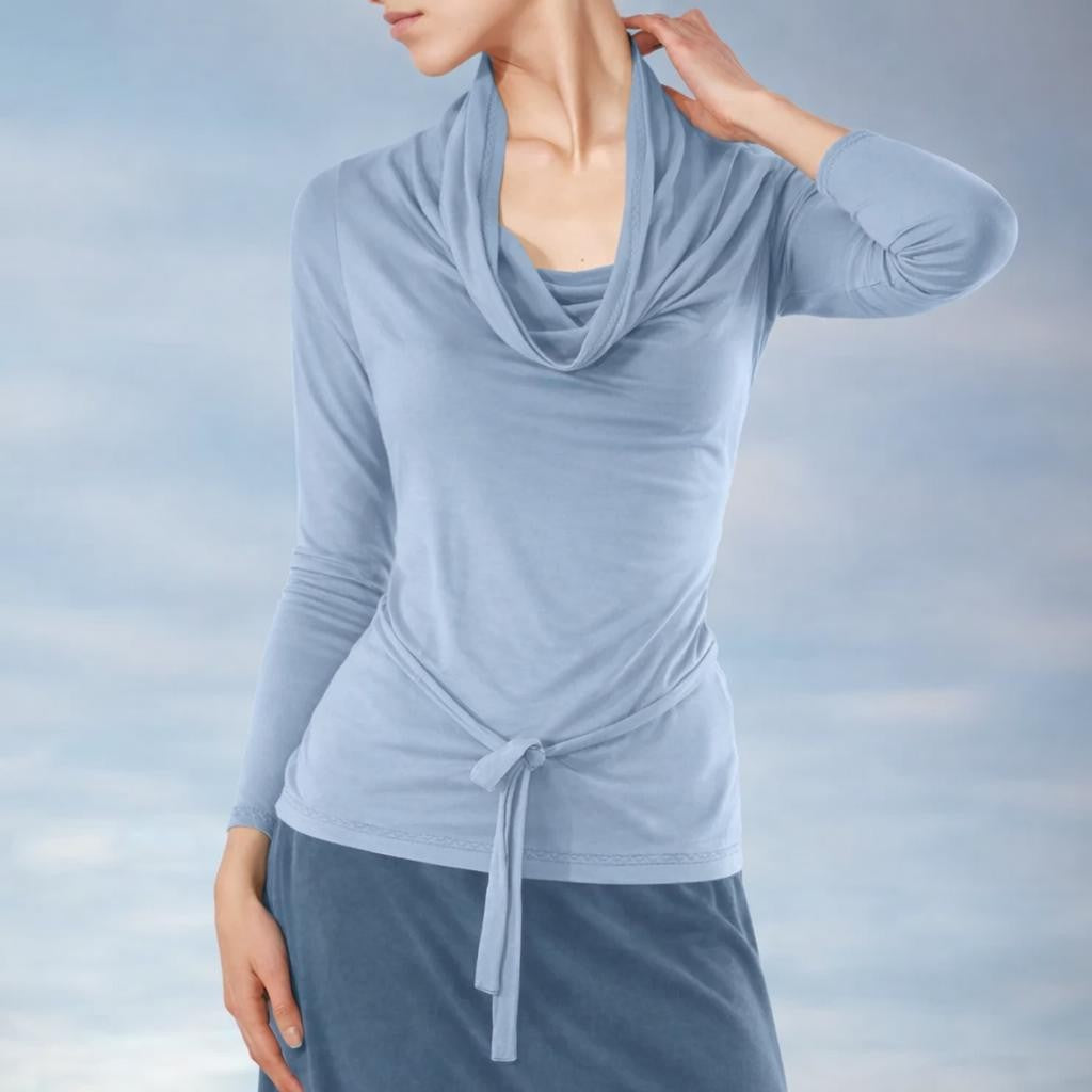 - Comfort fitted shirt met gedrapeerde hals en raglan mouw, gemaakt van soepele zijdezachte tencel tricot. Verwijderbaar taille koordje.
