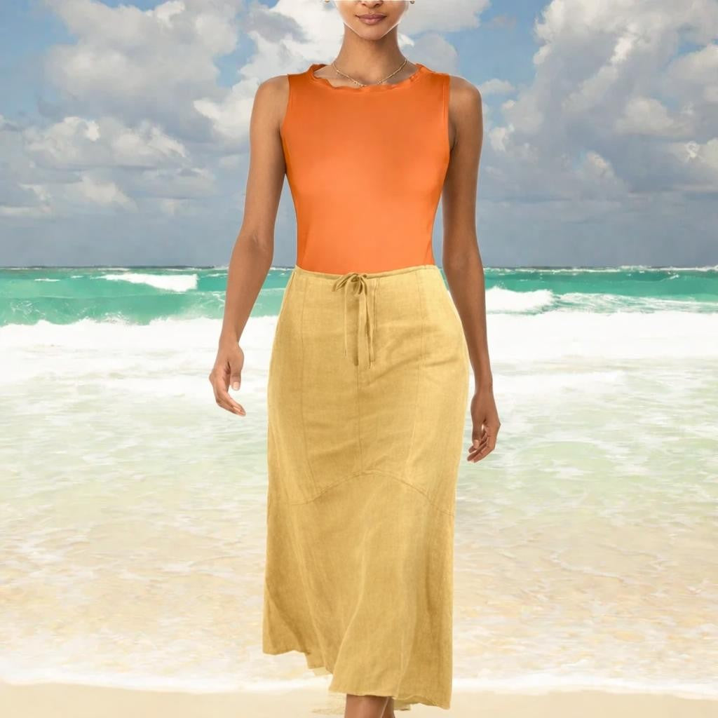 - Sleeveless camisole shirt with sculpted collar, made of Tencel jersey, soft and shiny and feeling as silk.