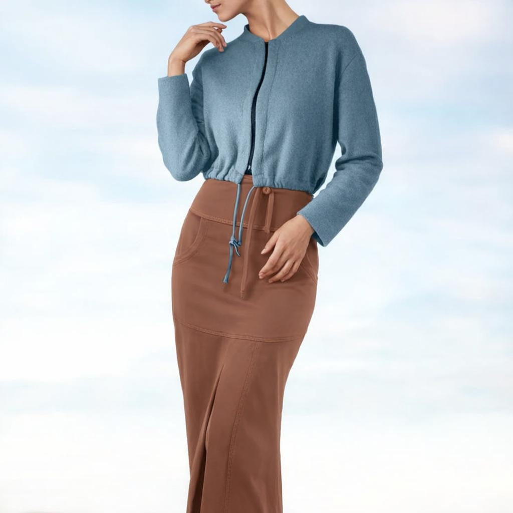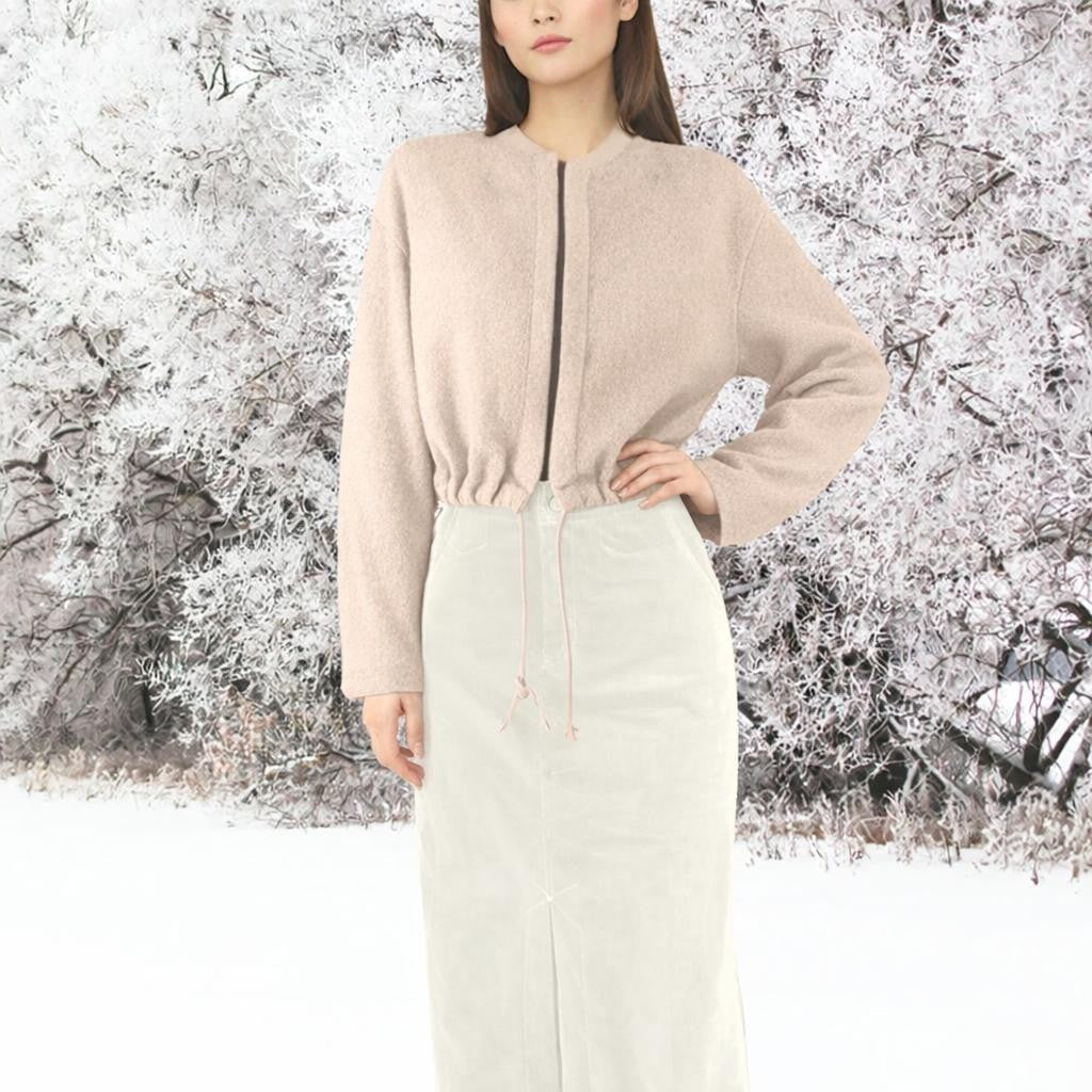 - Comfortable bomber cardigan in warm and soft Merino wool fleece.